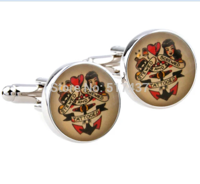 Hot:Handmade Vintage Sailor Jerry Cufflinks