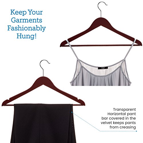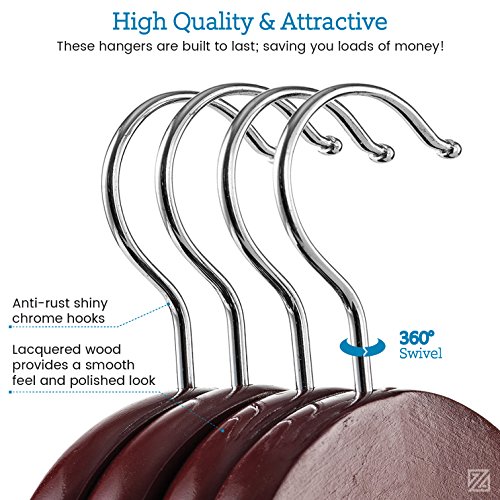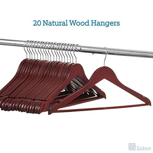 -. Title : Zober Solid Cherry Wood Suit Hangers with Non Slip Bar and Precisely Cut Notches - 360 Degree Swivel Chrome Hook - Cherry Finish Super Sturdy and Durable Wooden Hangers - 20 Pack
