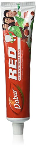 -. Feature : Dabur Red Dentifrice / Contains Clove, Mint, Toothache Tree (Zanthoxylum alatum) / A Trusted name in the world of herbal preprations / Suitable for vegetarians