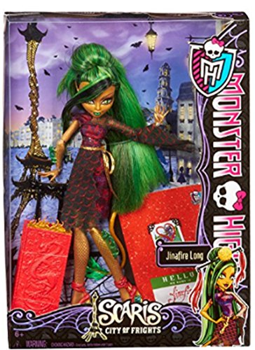 Monster High Monster High Travel Scaris Jinafire Long Doll The ghouls of Monster High are hitting the skies for their first trip abroad together in monster style! Their destination is Scaris, the city of lights and hometown for Rochelle Goyle. A popular destination for jet-setting ghouls, Clawdeen Wolf, Frankie Stein and Rochelle Goyle meet two new friends while traveling the city: Skelita Calaveras and Jinafire Long. With their funky fashions and journaling ways, they fit right in with the Monster High crew. Each doll wears a new travel outfit complete with jewelry and comes with a rolling suitcase and travel journal or sketchbook to capture those memorable moments. Also includes hair brush and doll stand for picture-perfect snapshot poses. Dolls cannot stand alone. - The ghouls of Monster High are hitting the skies for their first trip abroad together in monster style!