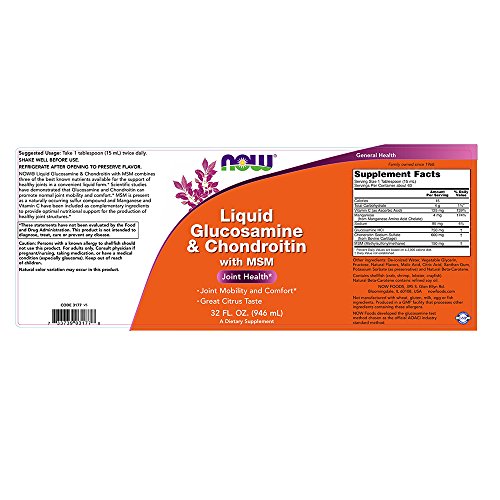 NOW Glucosamine & Chondroitin with MSM Liquid,32-Ounce