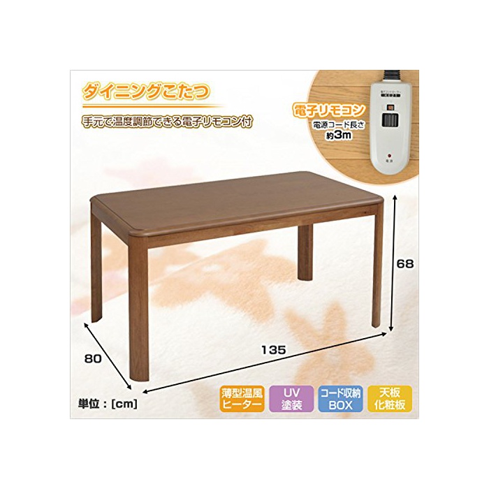 원본상품명: 山善(YAMAZEN) ダイニングこたつ(135×80cm長方形) 電子リモコン付 WKH-D135(H68)MB