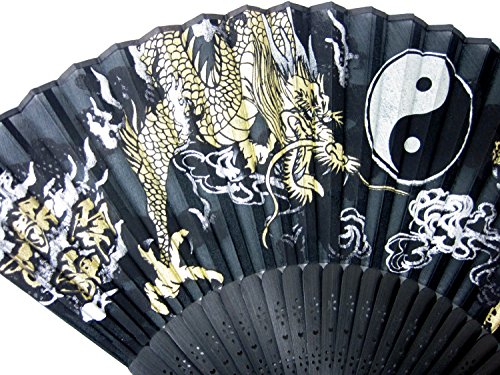 Japanese Luxury Folding Hand Fan: Yin-Yang, Dragon and Tiger (Stand Not Included)