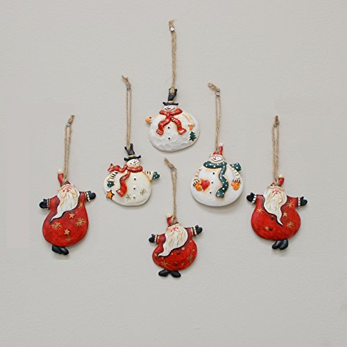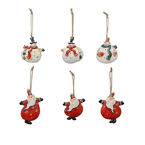 YK Decor 6 Assorted Christmas Wood and Resin Dancing Santa and Snowman Ornaments
