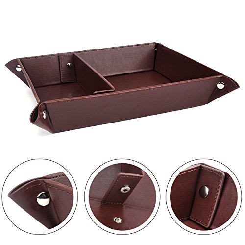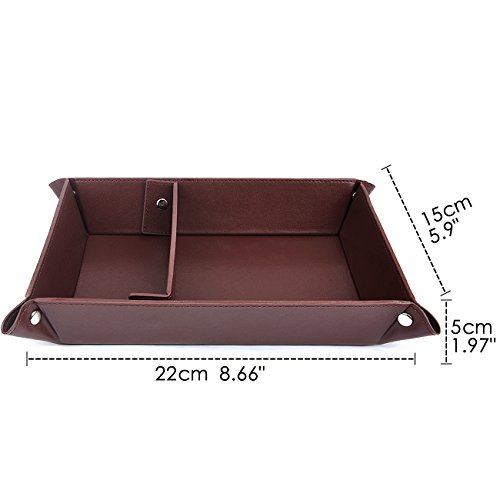 Valet Tray Jewelry Organizer,PU Leather Watch Box Coin Change Key Tray for Storage Coffee