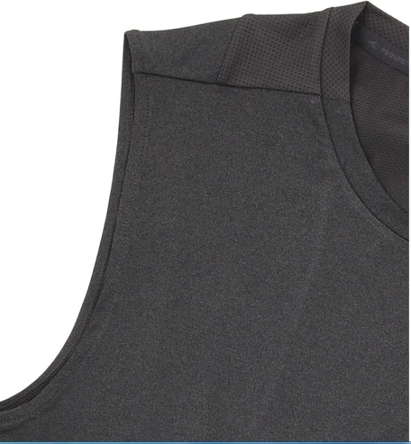 -등판 자가드 메쉬 배색 슬리브리스- 신축성이 우수하여 여름철 시원하게 착용가능- 자외선 차단 기능성 소재를 사용하여 장시간 워킹시에 인체에 유해한 자외선 차단- 열을 빠르게 흡수하여 특각적인 쿨링 효과가 있는 냉감 소재 사용