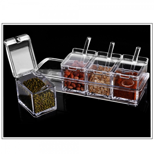 where each holder comes with a spoon for convenient use. You can keep your favorite spice or sugar fresh and odor-free and prevent the ash. It can be used to hold a variety of condiments: salt, pepper, sugar, aginomoto etc..