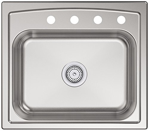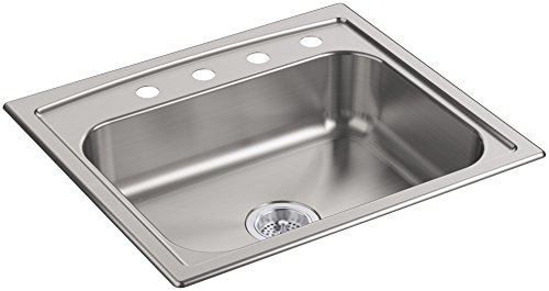 KOHLER 4011-4-NA Toccata 25" x 22" Top-Mount Single-Bowl Kitchen Sink with Four Faucet Holes, Stainless Steel