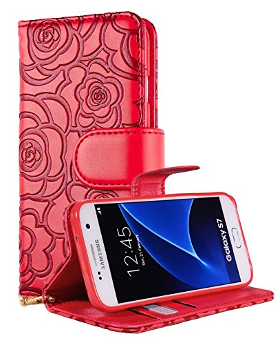 Designed Specifically for Samsung Galaxy S7 : Premium Synthetic Leather Wallet Case, delicate embossing process, Inside of case is made of TPU material that will not scratch your phone