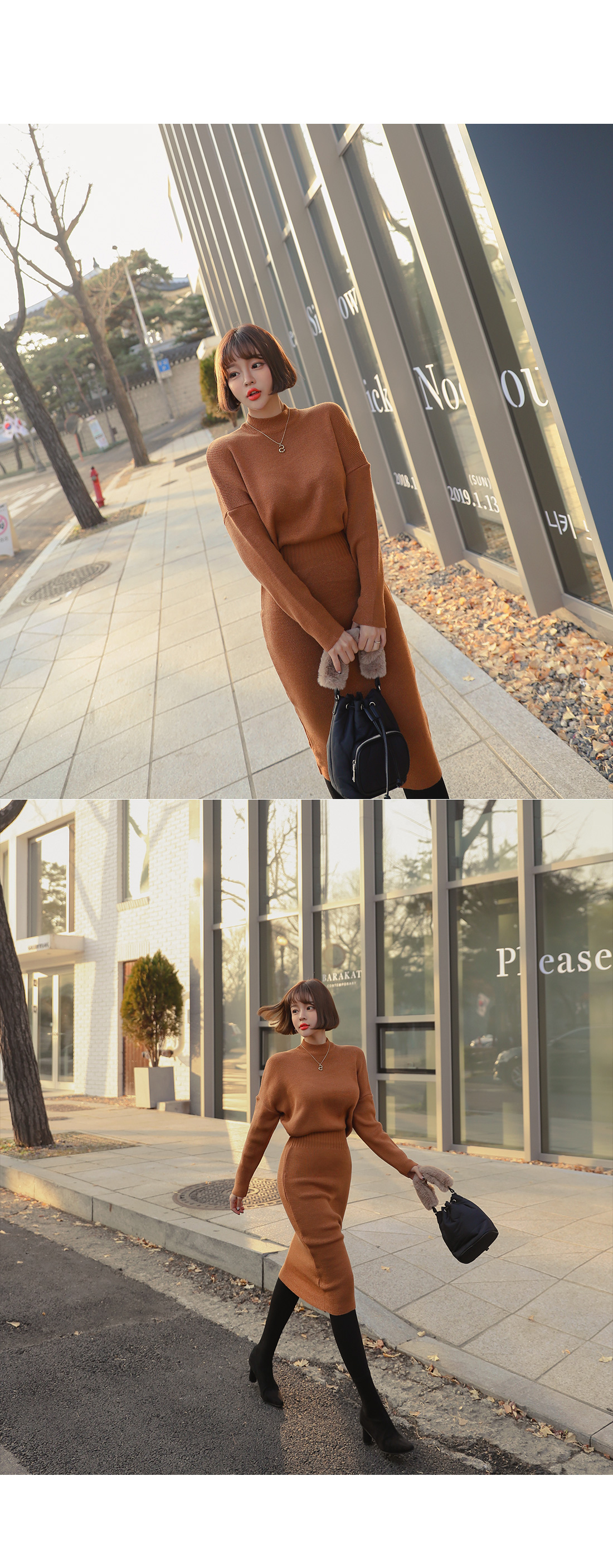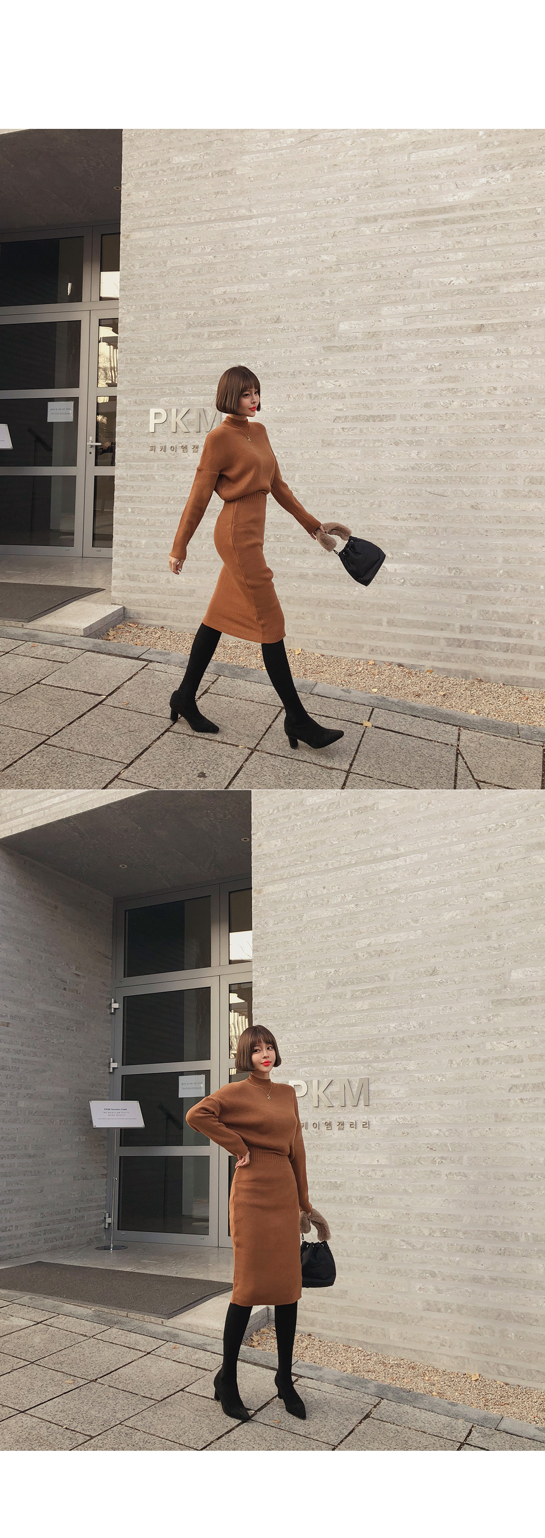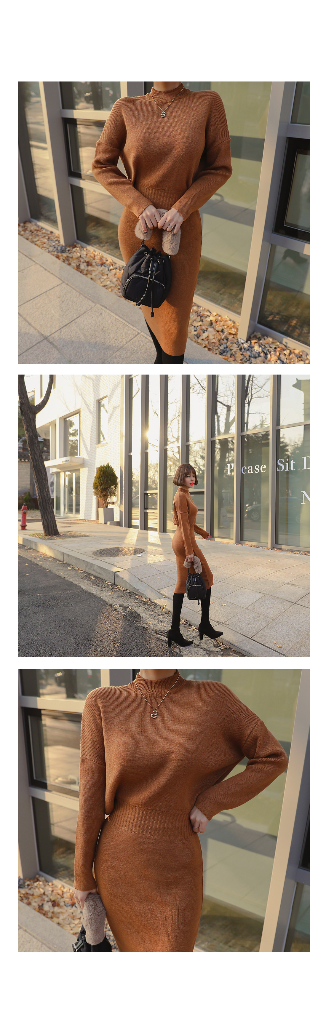 여성스러운 실루엣을 연출해 줄 니트 원피스를 소개할게요.