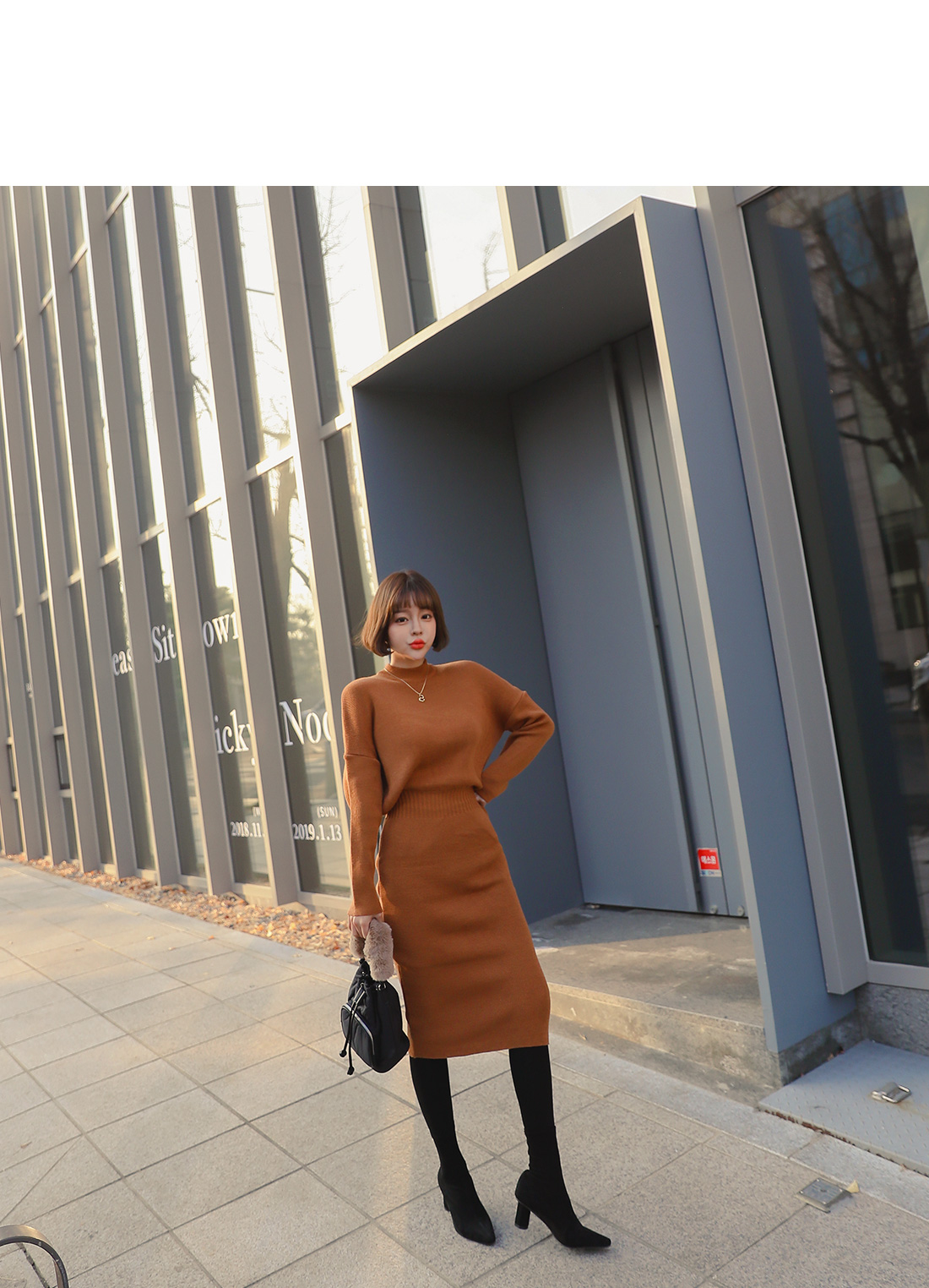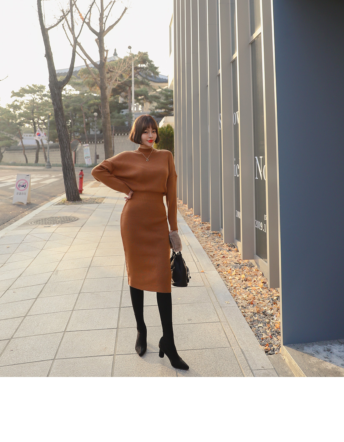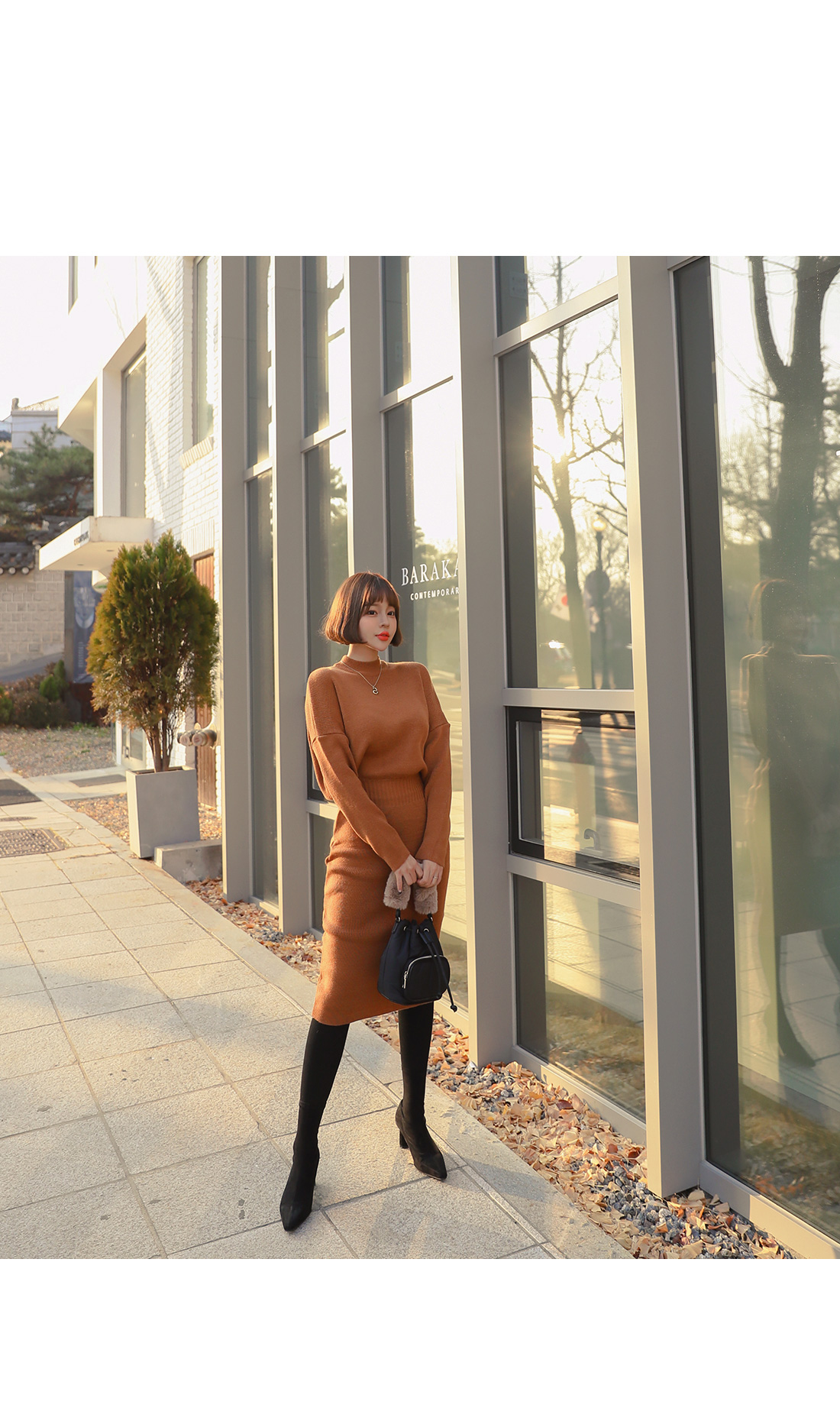 여성스러운 실루엣을 연출해 줄 니트 원피스를 소개할게요.