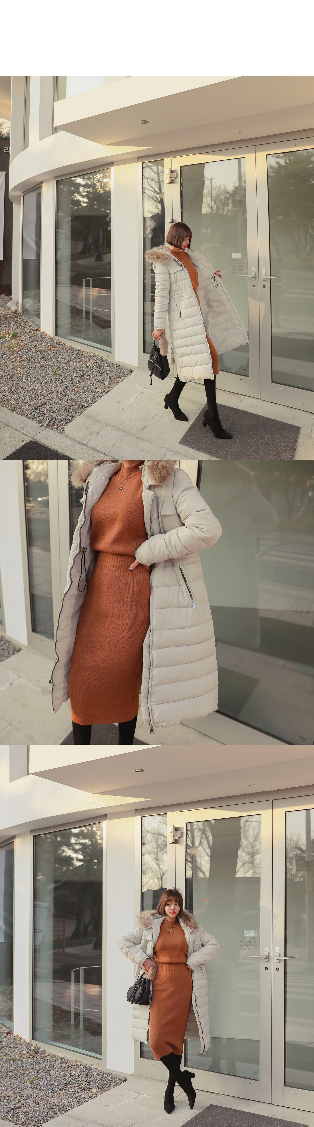 적당한 두께감의 니트 소재로 다양한 아우터 안에
