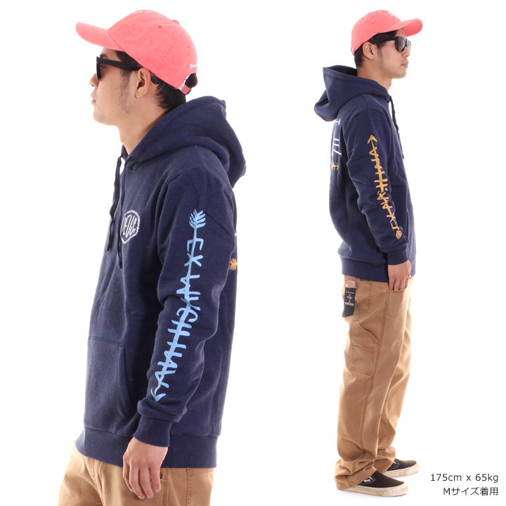 ユルいタッチで描かれたロゴが印象的なプルオーバーパーカーです。フロント、スリーブ、バックと贅沢にプリントを施し、仕上げにエンザイムウォッシュ加工をかけ柔らかい風合いを引き出しています。一枚着で十分なインパクトを与えるストリートで好印象の一枚◎