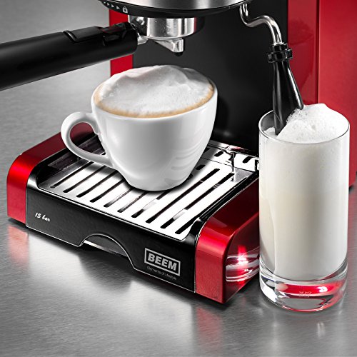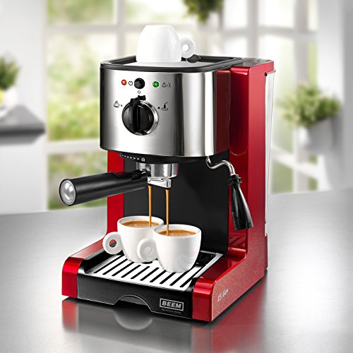 -. Binding : Haushaltswaren -. Brand : Beem Germany -. ClothingSize : one size -. Color : rot/metall -. EAN : 4032934692750 -. Feature : Profi Espresso Maschine mit 15 bar Druck / Leistungsstarke 1350 Watt / Großer Wassertank mit 1,5 L Fassungsvermögen / Neuartiges Aluminiumguss-Thermoblock Pumpsystem / 2 verschiedene Edelstahlfiltergrößen / automatische Abschaltung nach 20 Min. gemäß neuester Öko-Richtlinie. / Vorzeitige Abschaltung durch Drücken des Ein/Aus-Schalters für min. 3 Sek. -. Label : BEEM -. LegalDisclaimer : Artikel ist original verpackt, aber die Verpackung hat kleine Schönheitsfehler. Artikel die auf ihre Funktionalität hin mit Wasser geprüft wurden, können Spuren bzw Rückstände von Wasser enthalten. Artikel die auf ihre Funktionalität hin geprüft wurden, können Spuren bzw Rückstände von Kaffeepulver enthalten. Mittlere kosmetische Mänge -. Manufacturer : BEEM -. Model : D2000615 -. MPN : D2000615 -. PackageQuantity : 1 -. PartNumber : D2000615 -. ProductGroup : Küche & Haushalt -. ProductTypeName : KITCHEN -. Publisher : BEEM -. Size : one size -. SKU : 1082906 -. Studio : BEEM -. Title : BEEM Germany Espresso Perfect Crema Espressomaschine Edition Eckart Witzigmann (15 bar) brillantrot -. Warranty : Bitte besucht den Bereich "Allgemeine Geschäftsbedingungen" auf unserer Hilfeseite für weitere Informationen.