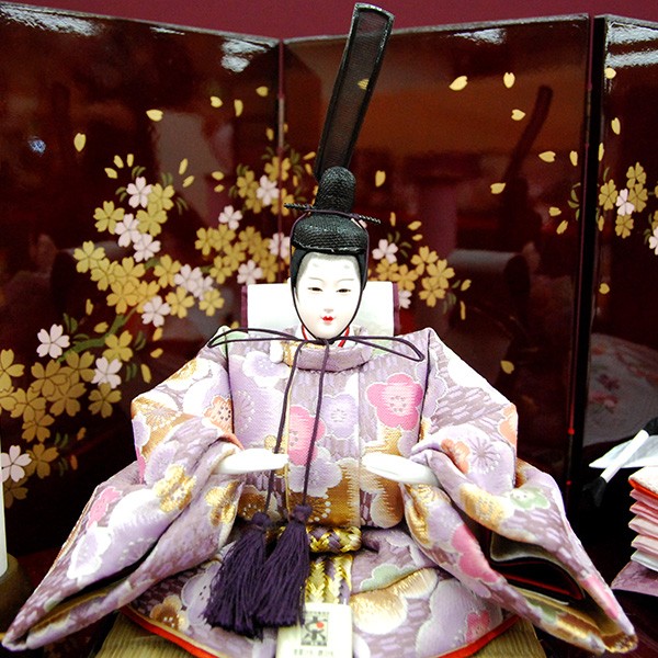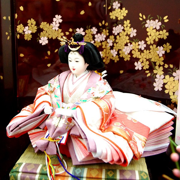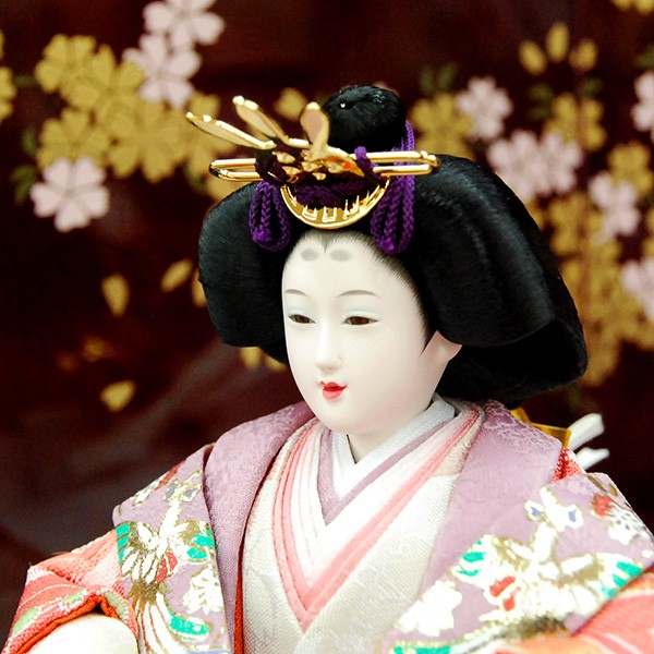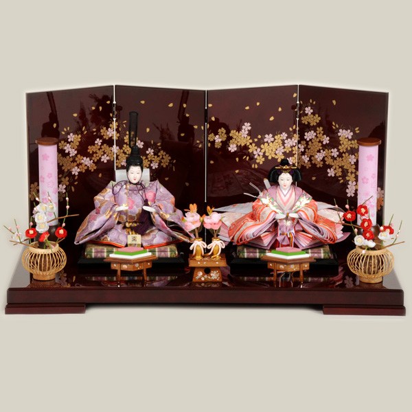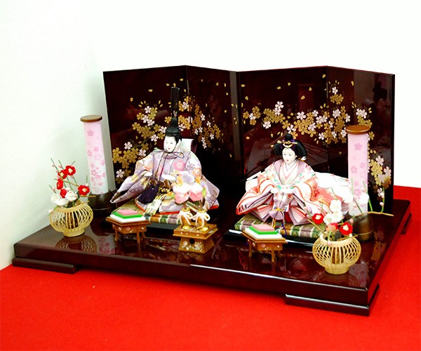 ・台座・屏風等には落ち着いた色目の雛人形セット。