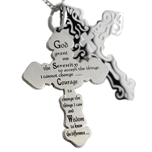 -. Title : Filigree Serenity Prayer Cross Two Piece Pendant 12 Step Serenity Prayer Necklace