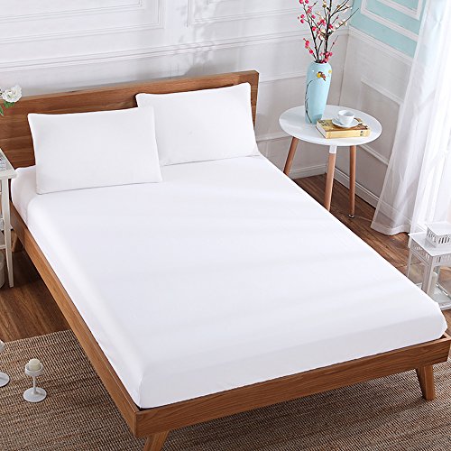 NTBAY 100% Egyptian Cotton Sateen Fitted Sheet 400 Thread Count Hotel Luxury Premium Quality Extra Soft and Cozy with Deep Pocket, King, White