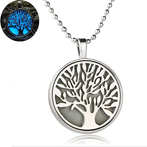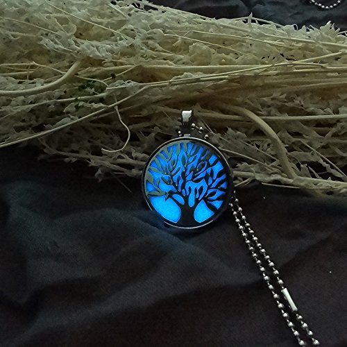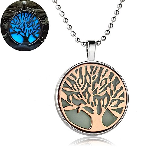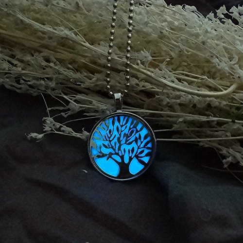 -. Title : Linsh Womens Unique Design Glow in The Dark Tree of Life Pendant Necklace Round Charm Chain Necklace