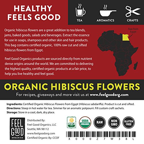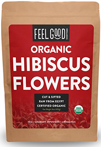 Organic Hibiscus Flowers - Cut & Sifted - 16oz Resealable Bag (1lb) - 100% Raw From Egypt - by Feel Good Organics