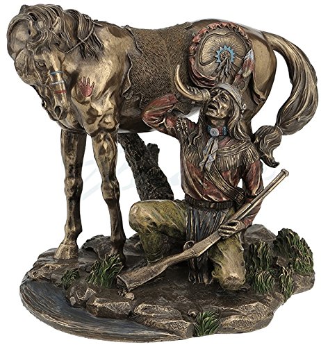 Apache Indian Drinking Water With Horse and Rifle Sculpture