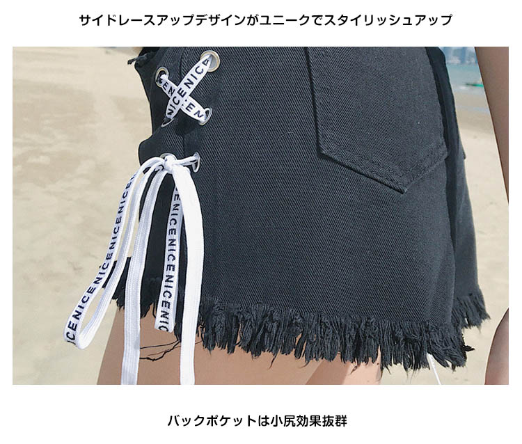 | サイドレースアップデザインが大注目のデニムショパン。Aラインシルエットが足をほっそり魅せて、フェミニンをプラス今季トレンドの裾切りっぱなしデザインがワンランク上のスタイル完成!いつものコーデに取り入れるだけで旬をGET!Tシャツやブラウスなどいろんなアイテムとコーディネートできて、着まわし力抜群 | |