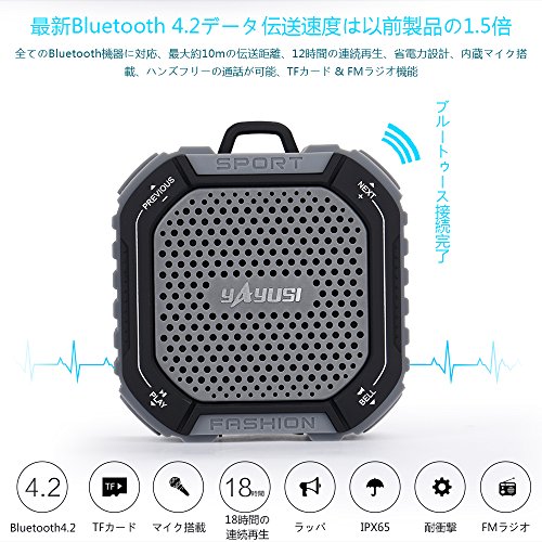 원본상품명: YAYUSI 便携 Bluetoothスピ?カ? 4.2 Hi-fi 18時間連?再生 IP65 防水FM 風呂 アウトドア 自?車