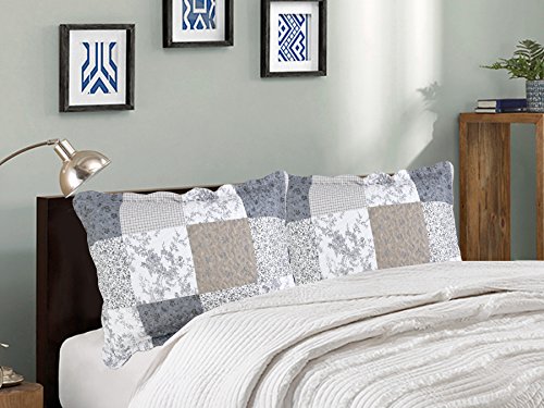 2-Piece Embroidered Quilted Pillow shams, Standard Size, Queen Size (Grey Floral 222)