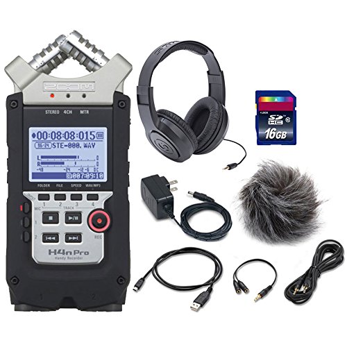 Zoom H4n Pro 4-Channel Handy Recorder Bundle with Accessory Pack For Zoom H4nSP, Stereo Headphones and 16GB SD Card