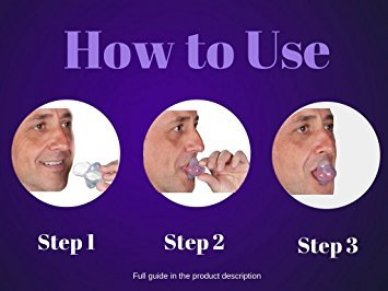 HOW TO USE THE PRODUCT Step 1 - Rinse the anti- snoring device under warm water to soften the material for a better and comfortable fit Step 2 - Next, make the "V" side of the device face downward. Step 3 - Gently position your device on the tongue and the place the tongue inside the opening until it touches both sides of medical soft silicone. Step 4 - To firmly hold the device in place, squeeze the silicone bulb to create a suction. Make sure when you squeeze the bulb you squeeze the right amount so it fits comfortably on your tongue. The suction will increase with the amount of your squeezes. The suction should just be right that you do not feel the pressure on the tongue. For beginners do trial and error until you find the right one. Step 5 - In order to take out the device, gently squeeze the silicone bulb. This will release all the suction and will come out of your tongue smoothly. Step 6 - After that make sure you rinse it with warm water and place it in your protective case, which is INCLUDED.
