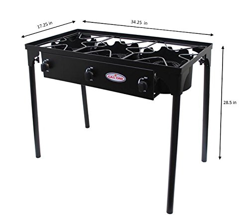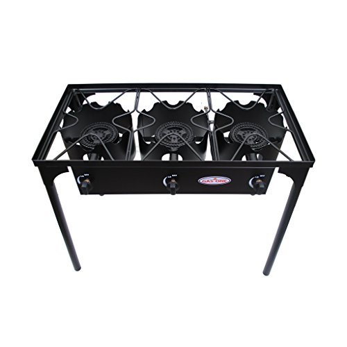 - PROPANE TRIPLE BURNER FOR OUTDOOR COOKING Equipped with three burner heads, each exuding 75,000 BTU (for a total of 225,000 BTU), Gas One’s Triple Burner provides extreme heat for various different cooking scenarios. From tailgating to catering, this burner stands out for those looking for a little more range in their heat.