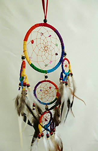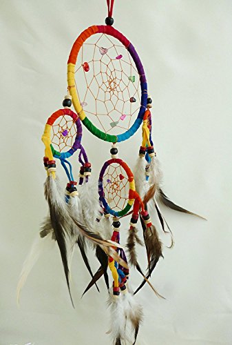 New Handmade Multi-Color Dream Catchers Hanging Ornaments with Feathers and Beads 4.5" Diameter and 18" Long C-001