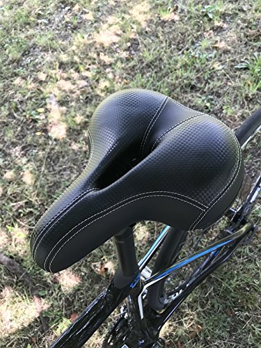 The dual suspension below the seat absorbs the shock and helps cycling travel