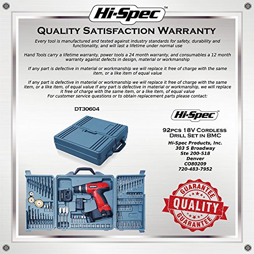 - HI-SPEC POWER TOOL 24 MONTH QUALITY GUARANTEE: Satisfaction assured on this Cordless Drill with UL approved charger plug, all neatly stored in a robust blow molded case.