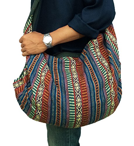 - An everyday shoulder bag that doubles as a backpack! So very durable hand weave cotton fabric that's colorful and brings fashion sense to practical use. Large sized zippered compartment with an inside zippered pocket and strong yet comfortable cotton straps.
