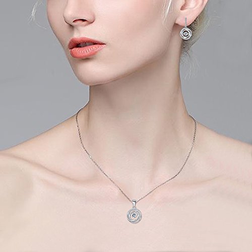 -. Title : BriLove Women 925 Sterling Silver Dancing CZ Round Spiral Swirl Pendant Necklace Dangle Earrings Set Clear