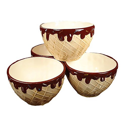 -. Title : D'Lusso Designs Home Decorative Four Piece Waffle Cone Design Ceramic Ice Cream Bowls Set