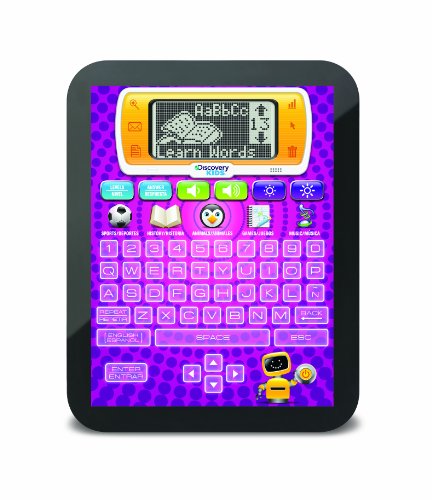 This Discovery Kids Teach and Talk Activity Tablet includes more than 60 activities for kids! Bilingual Teach and Talk Tablet features a large LCD display, full-function keyboard & digital speech technology. Play in English or Spanish language. Over 60 interactive activities. It is sure to provide hours of learning fun.Feature