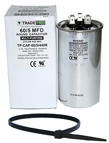 60+5 MFD uf micro farad 370 or 440 Volt Dual Run Round Capacitor Bundle TP-CAP-60/5/370-440R for Condenser Straight Cool or Heat Pump Air Conditioner and Zip Tie