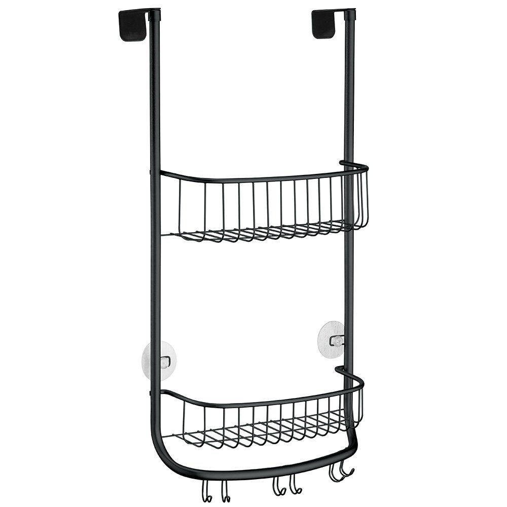 It is made of steel, with 2 baskets and 3 hooks.
