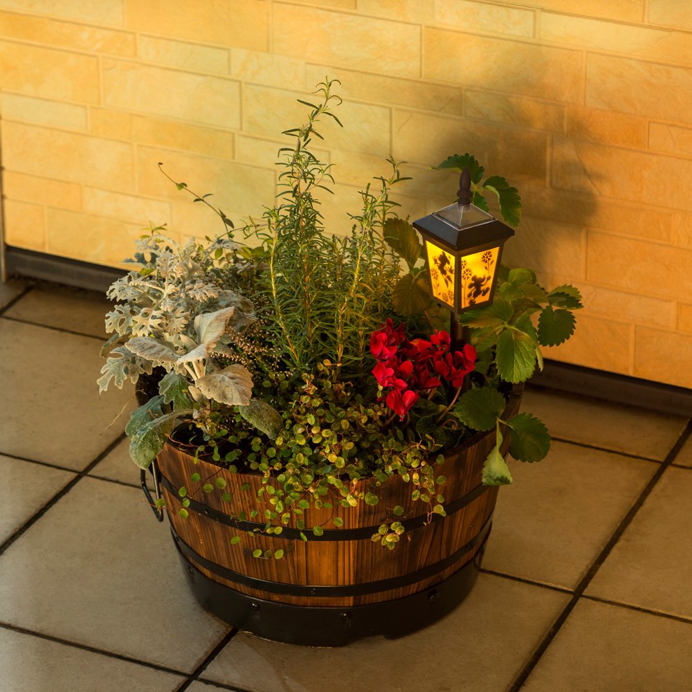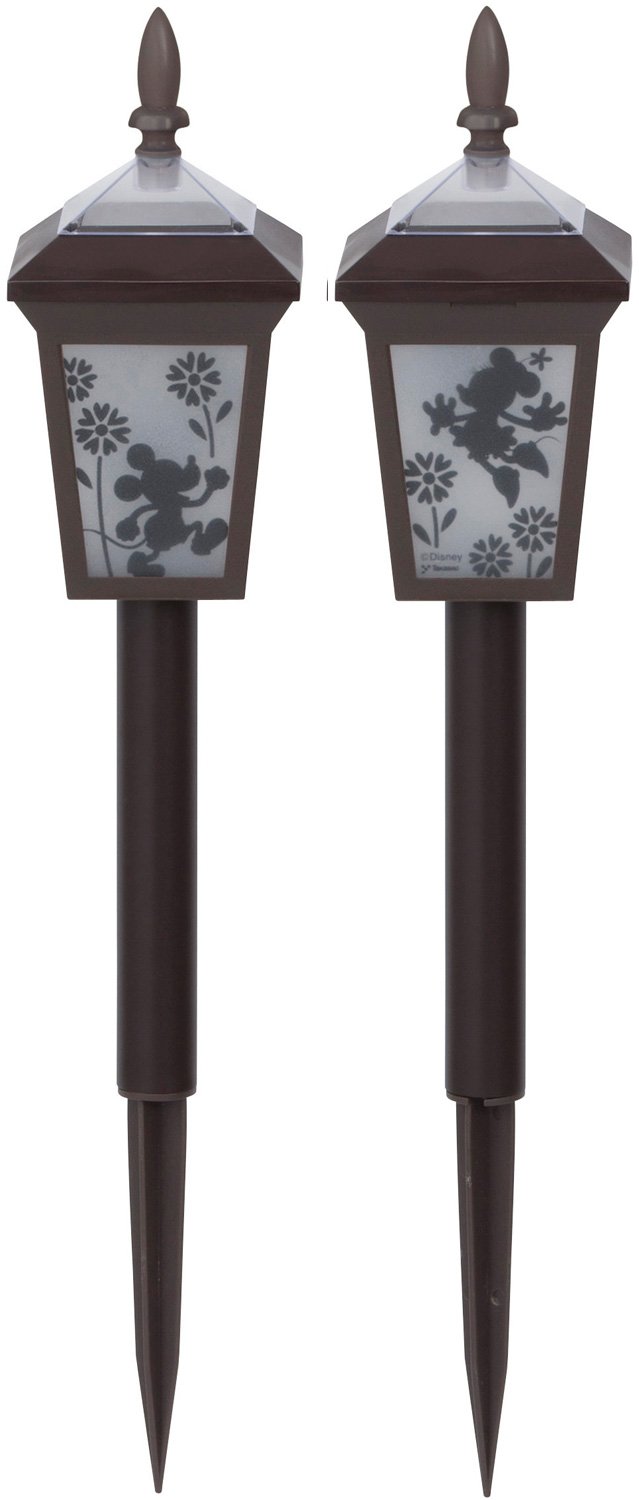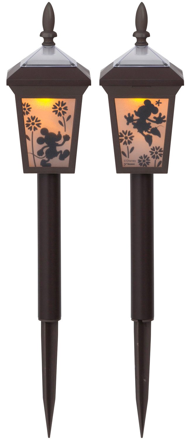 Disney characters make lively approach and flower beds.