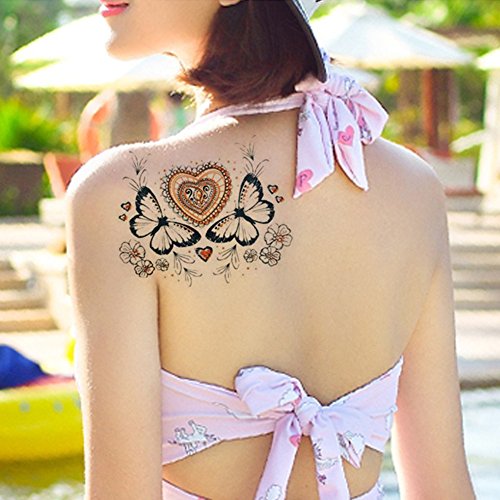 TAFLY Fake Tattoos Butterfly and Heart Temporary Tattoos 2 Sheets