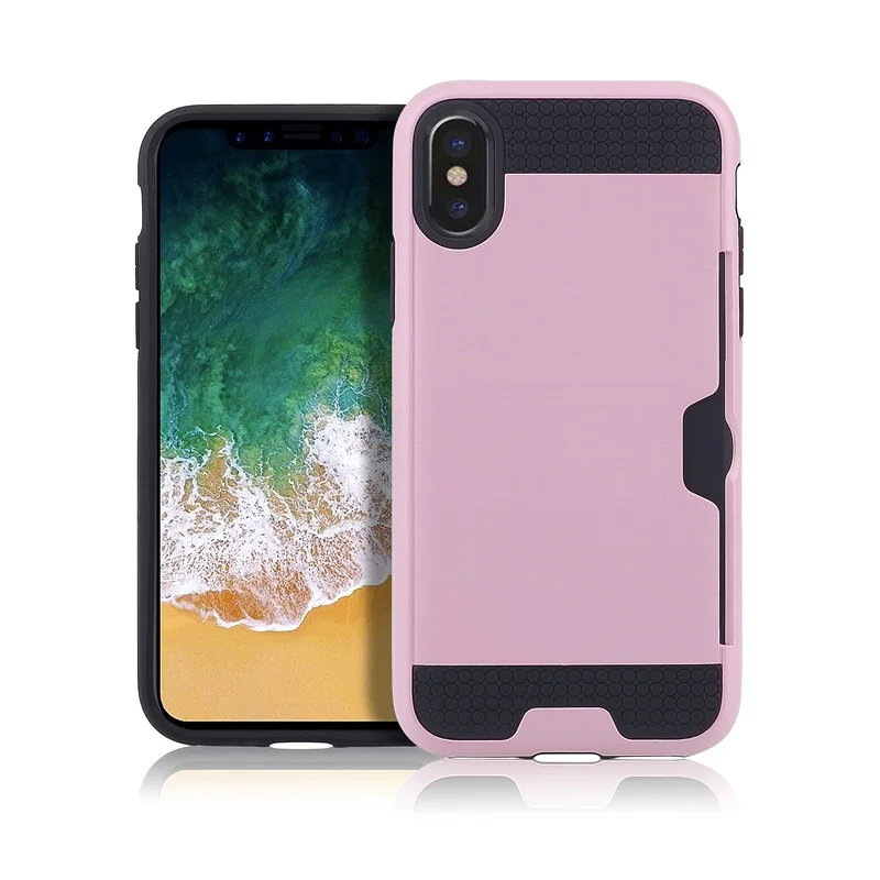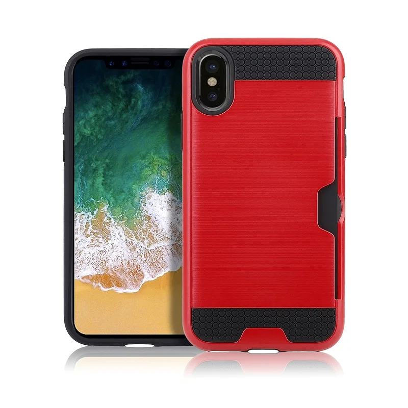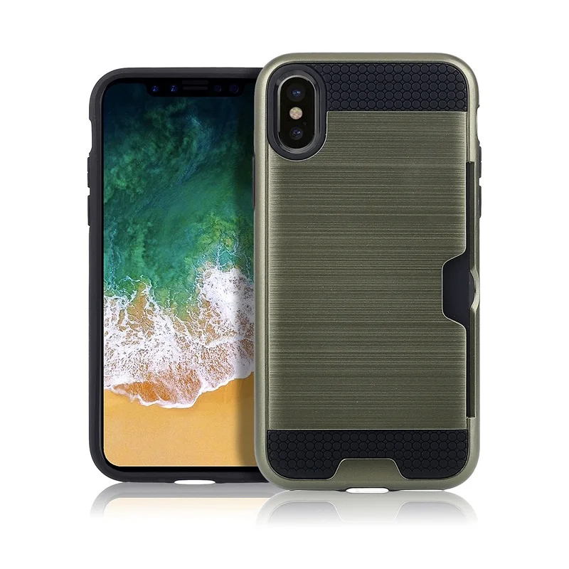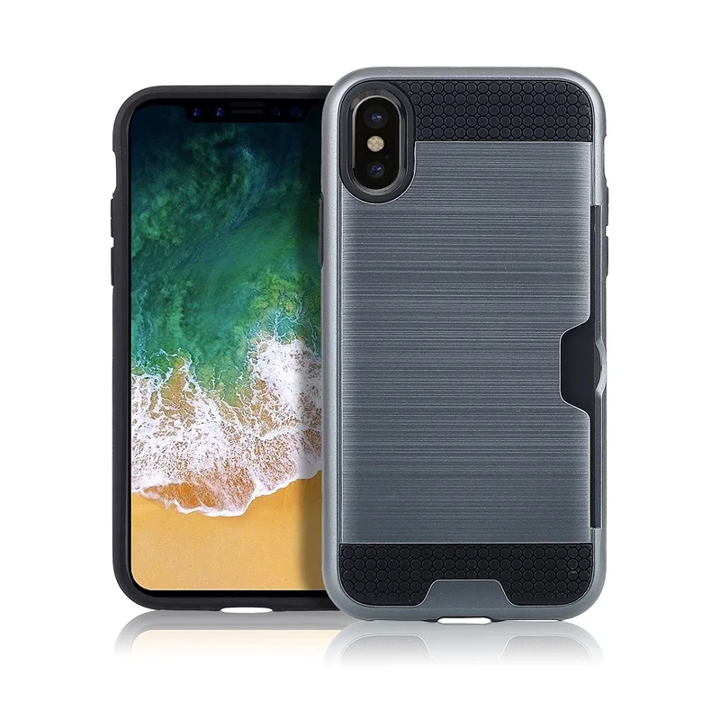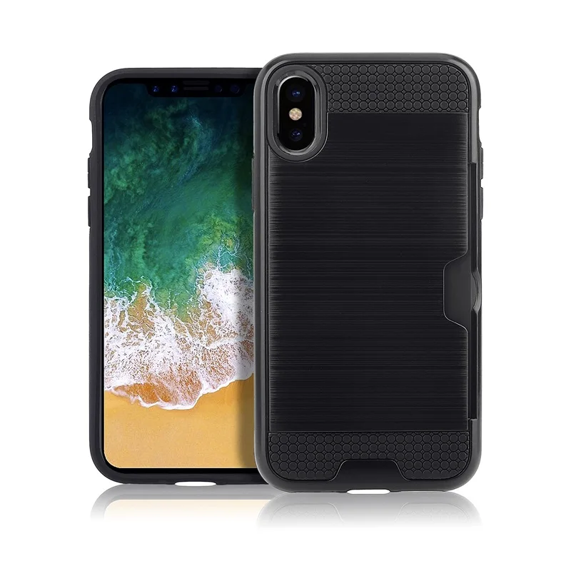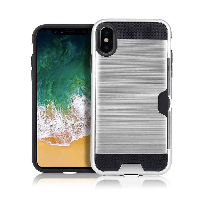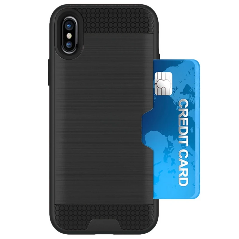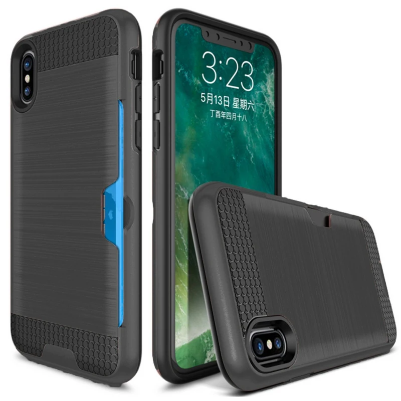 Style 1:Luxury Brushed Silicone Plastic Back cover with Card Slot Holder