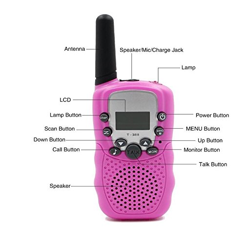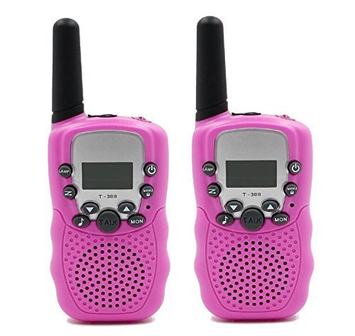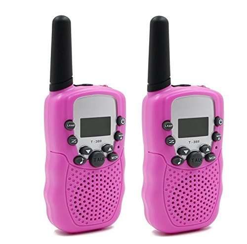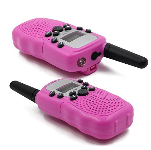 Camonity Two Pack 22 Channel Walkie Talkies for Kids Children Two Way Radio Long Range 2 Miles Open Field Handheld Children Toy for Family Game Pink