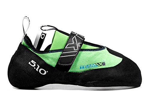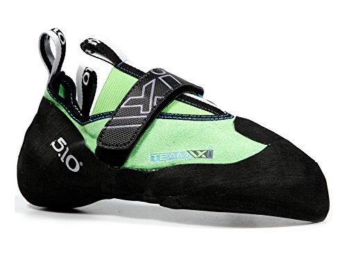 Studio : FiveTen Publisher : FiveTen Binding : Apparel Product Description The Team VXi's has a soft, synthetic suede upper that molds to your foot when you climb. Combined with Five Ten's new MI6 rand that is more sensitive and supple than other rands, and Five Ten's performance downturned last, the shoe is more comfortable and formfitting for longer climbing sessions. The Team VXi provides a super-responsive feel and allows you to pull your body into the wall, as if you had hands for feet. Performance is further enhanced by Five Ten's Active Arch Support that positions the shoe on your foot for a glove-like fit. A Velcro® closure system makes the shoe easy to put on, or to take off between sends. 0