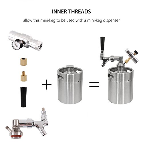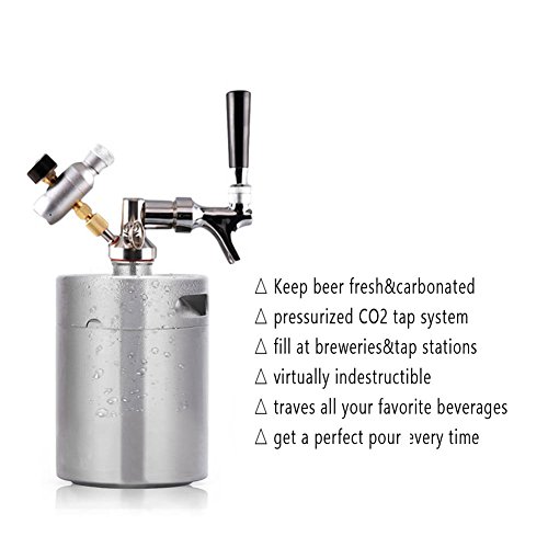 HAVEGET 64 Ounce Min Beer Keg Pressurized Growler for Craft Beer Dispenser System CO2 Adjustable Draft Beer Faucet with With Perfect Pour Regulator