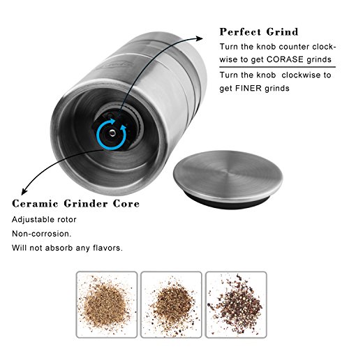 ♥ EASY TO GRIND PEPPER AND SALT—the built-in ceramic rotor is sharp and wear- resistant. You can grind spices without much effort and it is very fast. You can soon enjoy your delicious food
