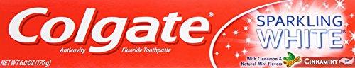 Colgate Sparkling White Cinnamint Gel toothpaste is formulated with cinnamon and natural mint flavors that will invigorate your mouth. This stain protection formula whitens teeth and helps prevent stain build-up.The formula fights cavities, and has a unique flavor experience for a healthy and whiter smile.Feature