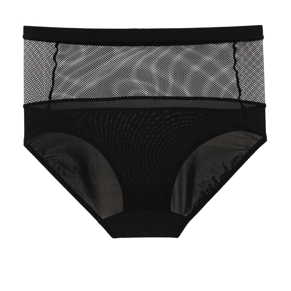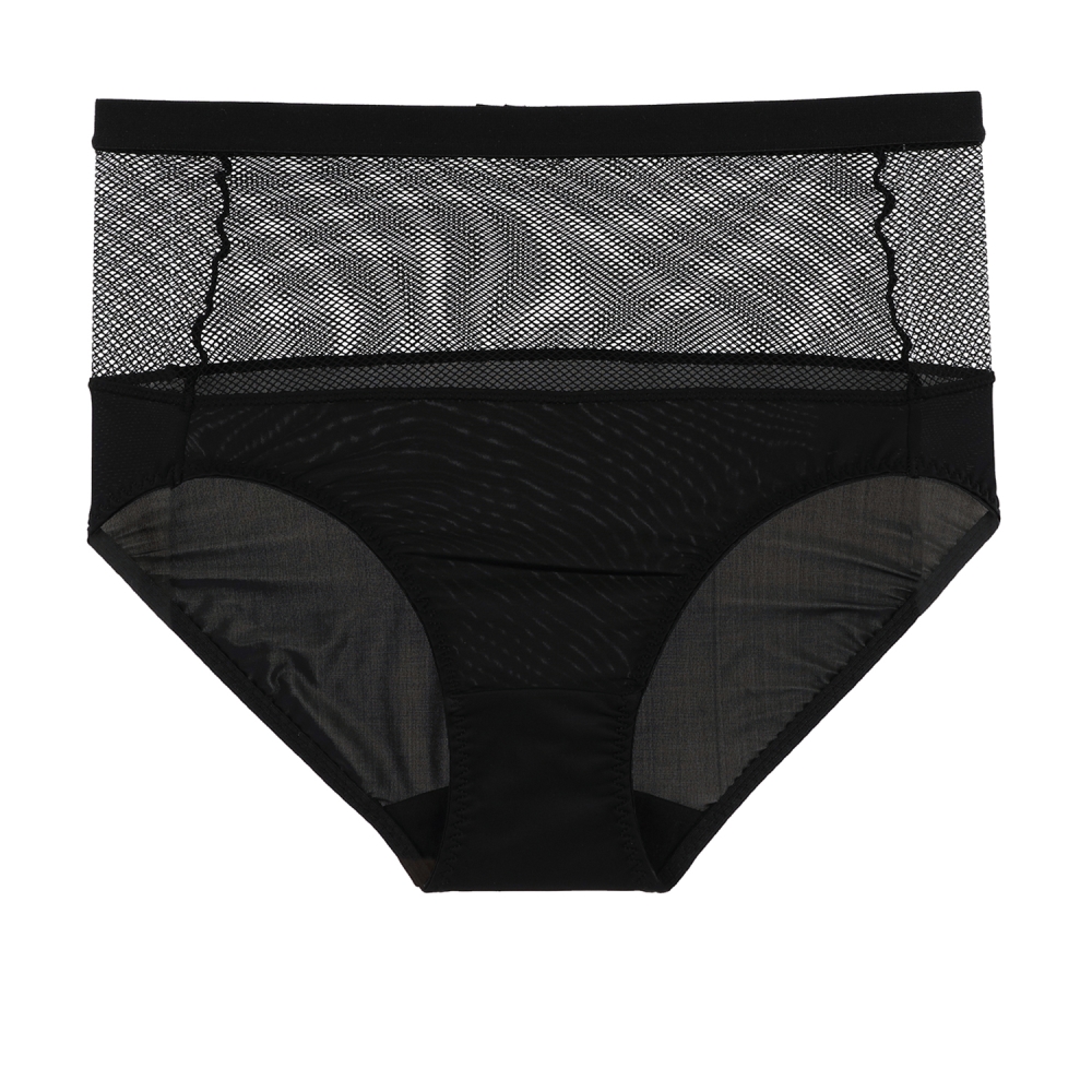 청바지 밖으로 보이게 입을 수 있는 하이웨스트 팬티에 그물망을 매칭하여 크롭탑 아우터와 코디 할 수 있는 삼각 팬티입니다.