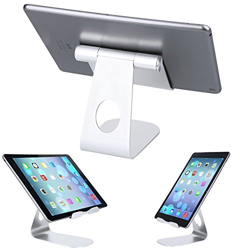 High Quality and Perfect Design - Constructed of premium aluminum alloy and flexible silicone for a solid build. Rubber pads and feet of tablet stand can protect your device from daily scratches and sliding.