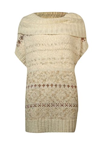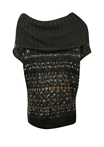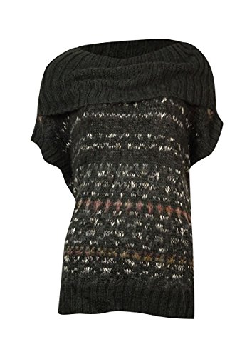 This sweater features no lining, pull over style, cowl neck, short sleeves, and acrylic fabric blend.
